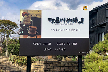 鉄骨・シルバーアルミ樹脂複合板・シート文字