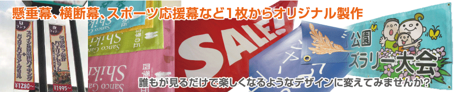 懸垂幕・垂れ幕・横断幕・スポーツ応援幕、歓迎幕、タペストリー・バナー・フラッグ・キャンペーン幕など